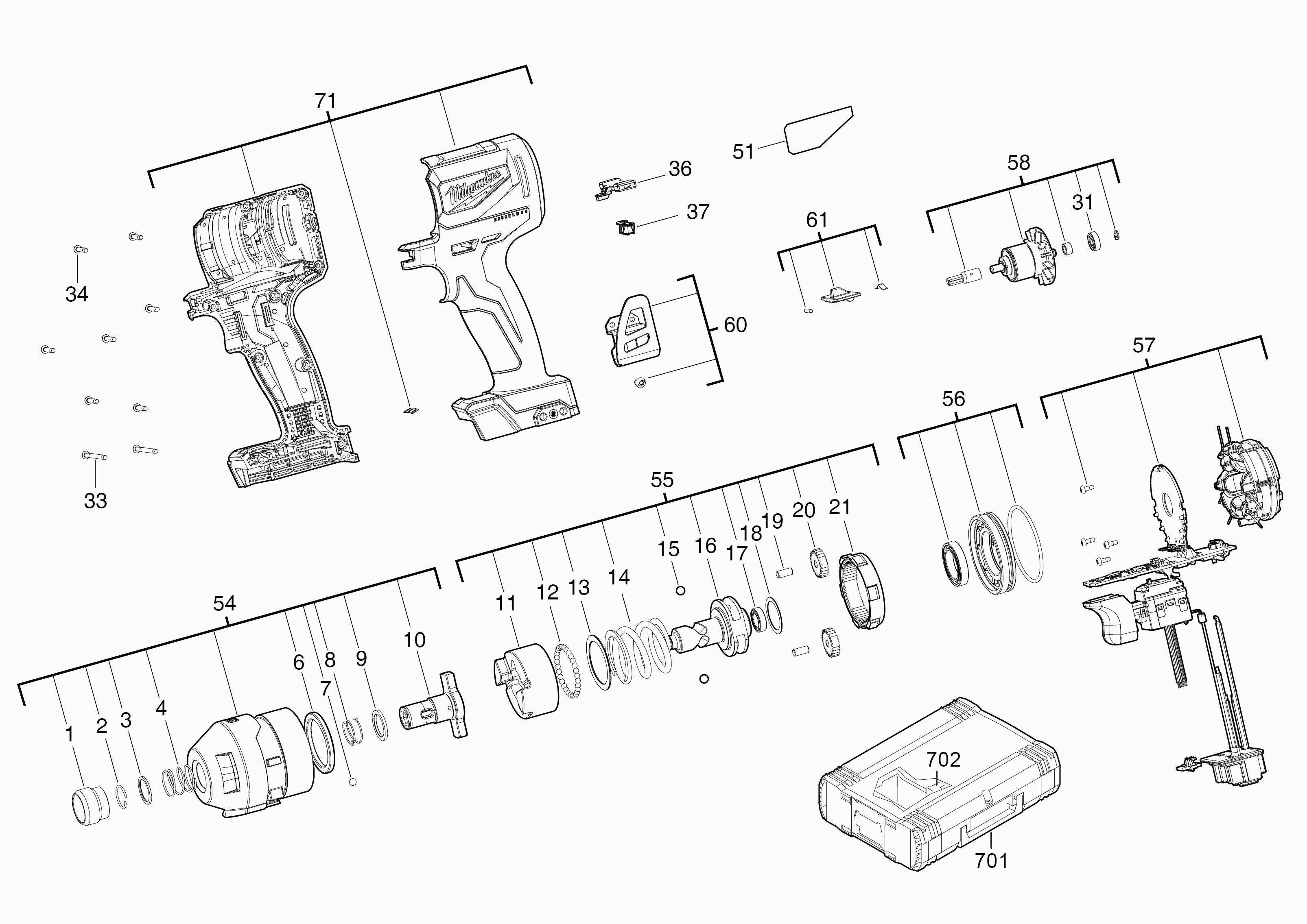 Liste de pièces de rechange des Milwaukee 4000467996 ( M18BLID2-0X )