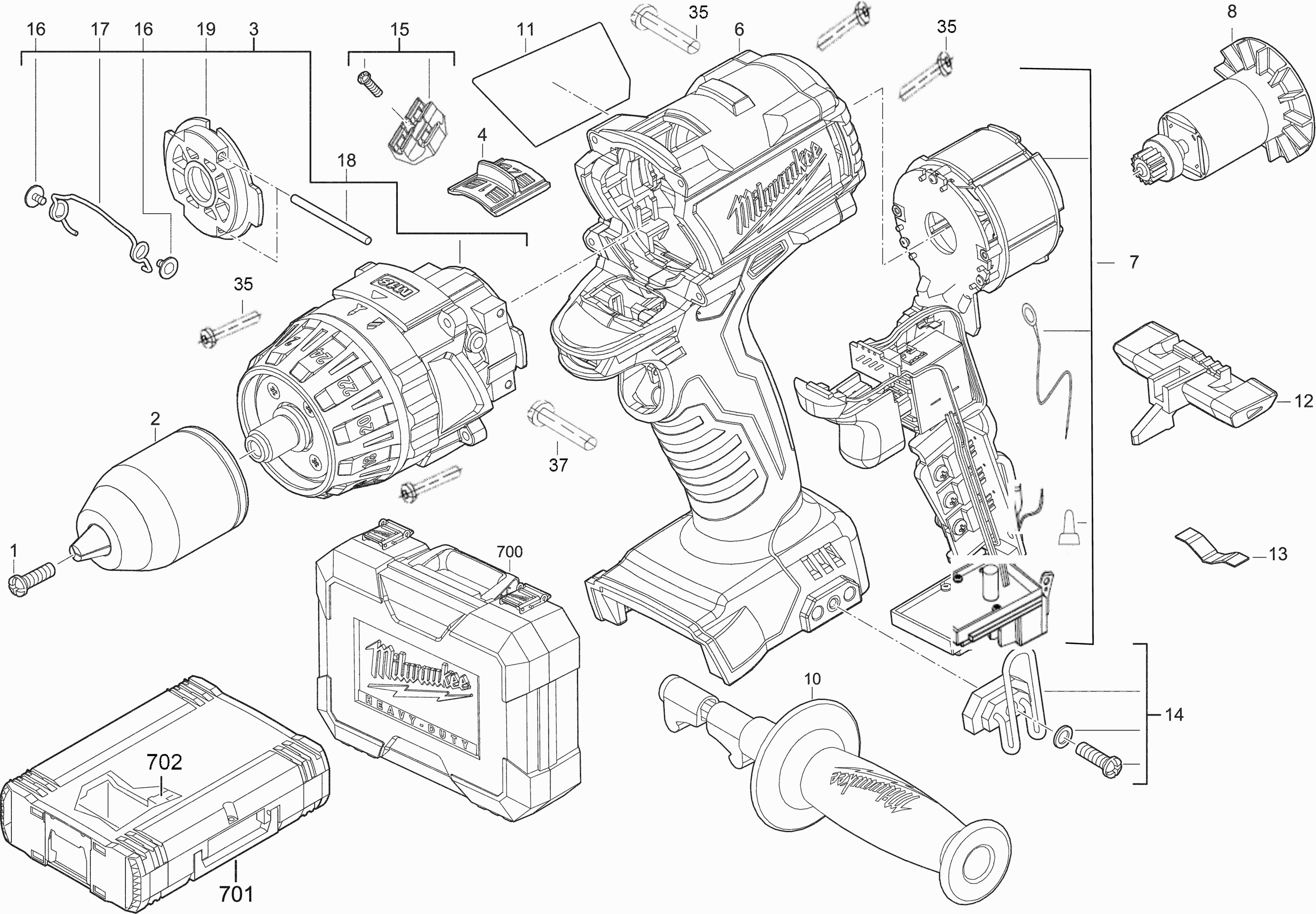 Liste de pièces de rechange des Milwaukee 4000452323 ( M18CDD-0 )