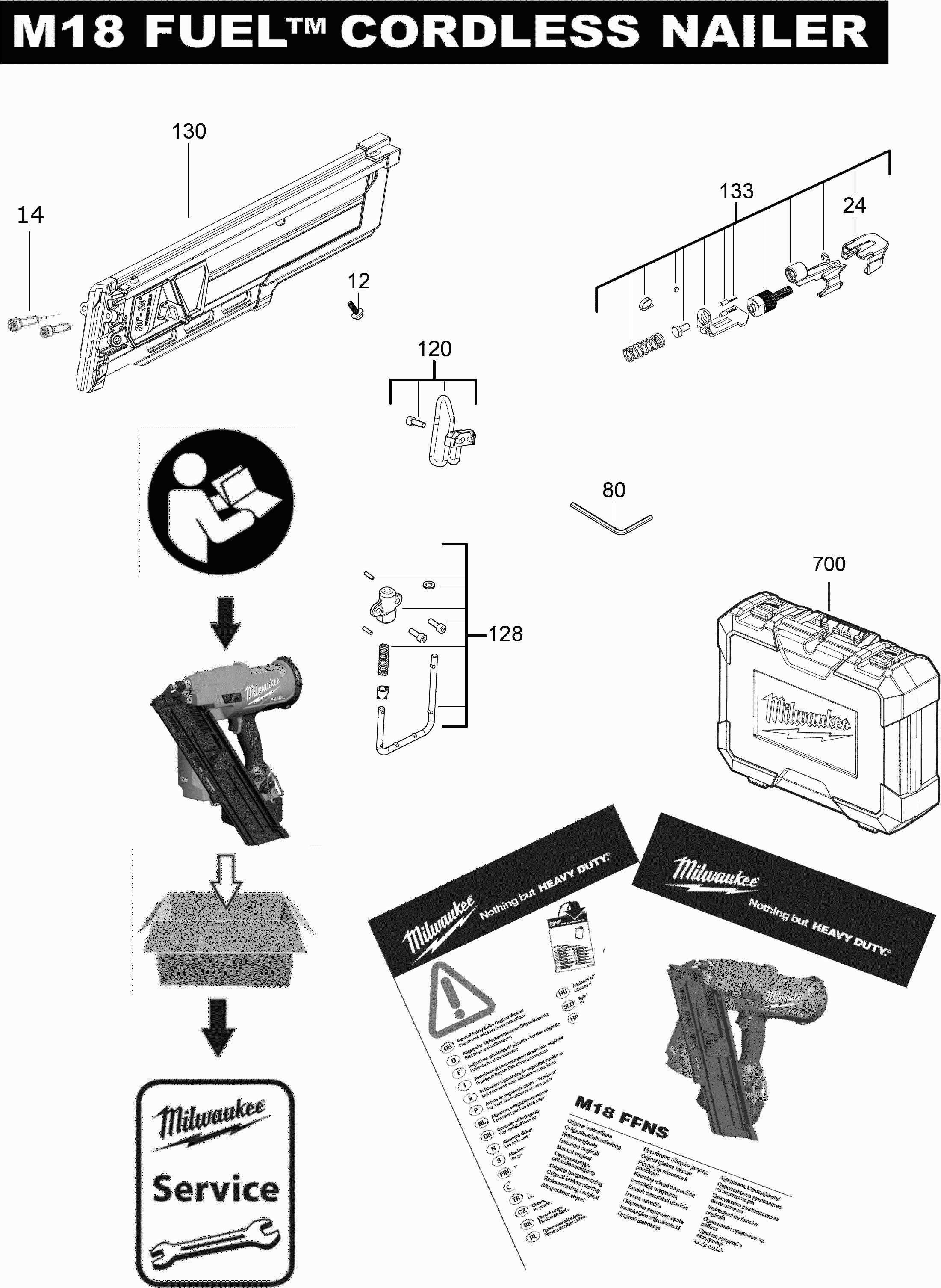 Liste de pièces de rechange des Milwaukee 4000477490 ( M18FFNS-502CIN2 )