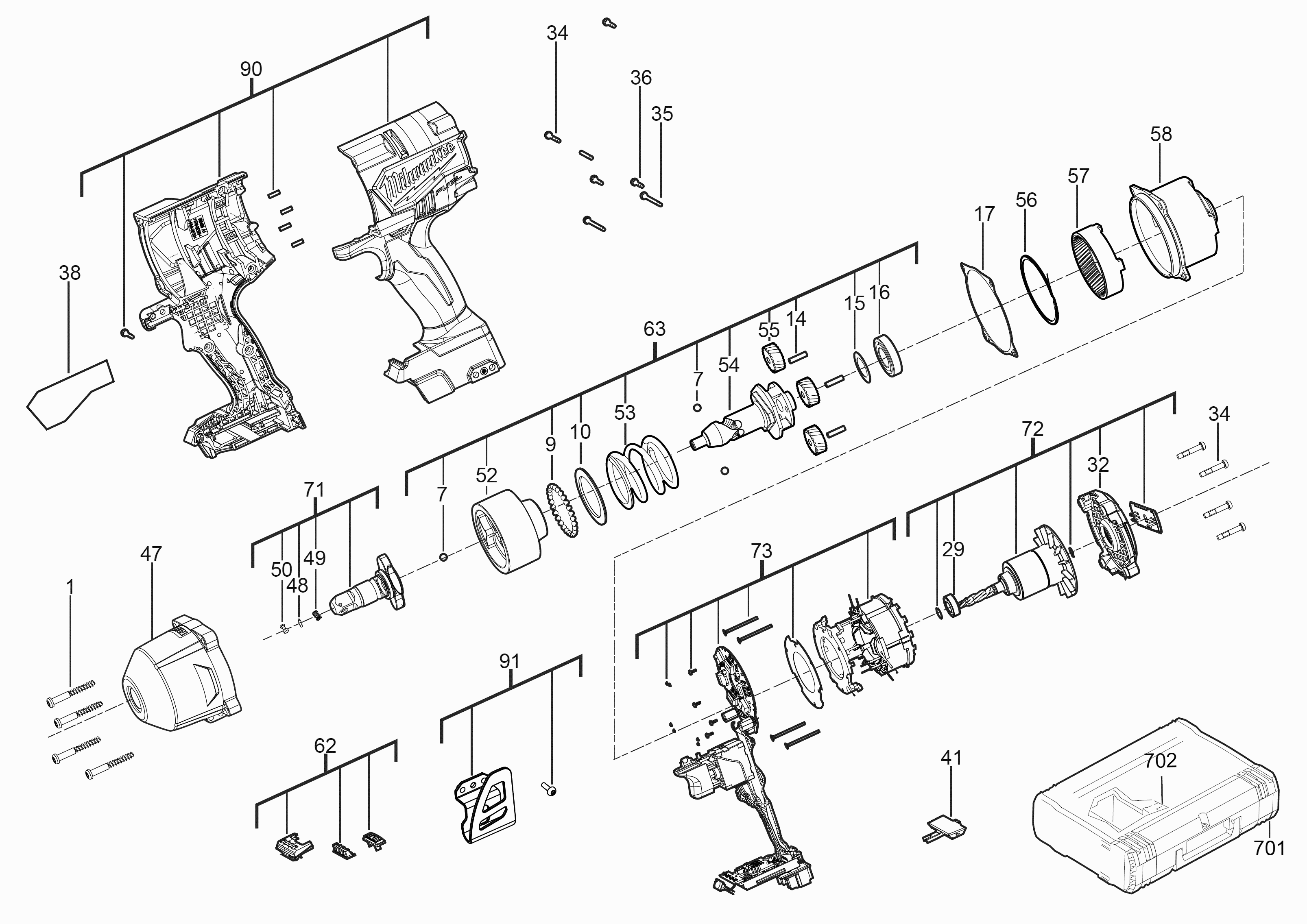 Liste de pièces de rechange des Milwaukee 4000467129 ( M18FHIWP12-0X )