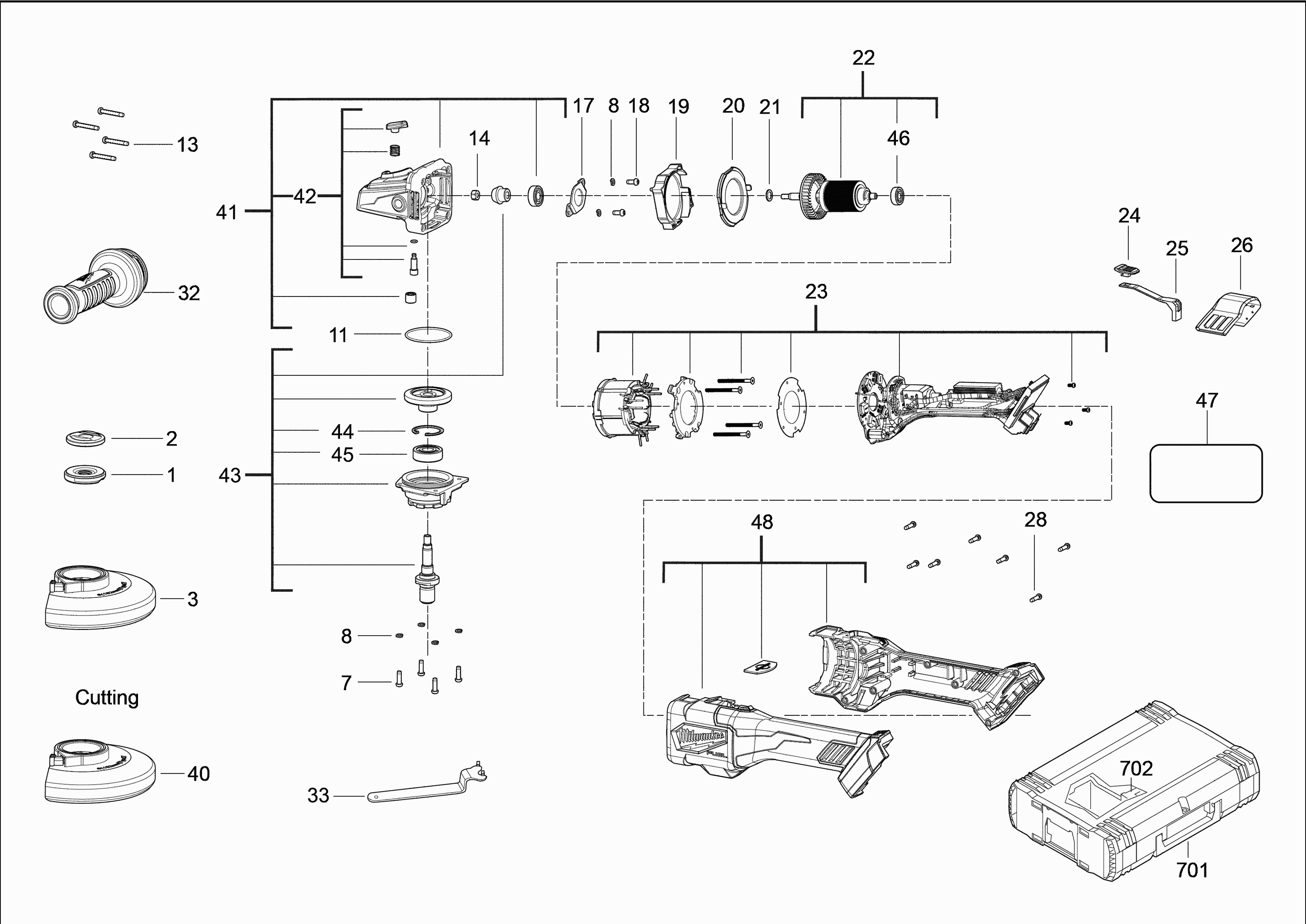 Liste de pièces de rechange des Milwaukee 4000469733 ( M18FHSAG150XB-0 )