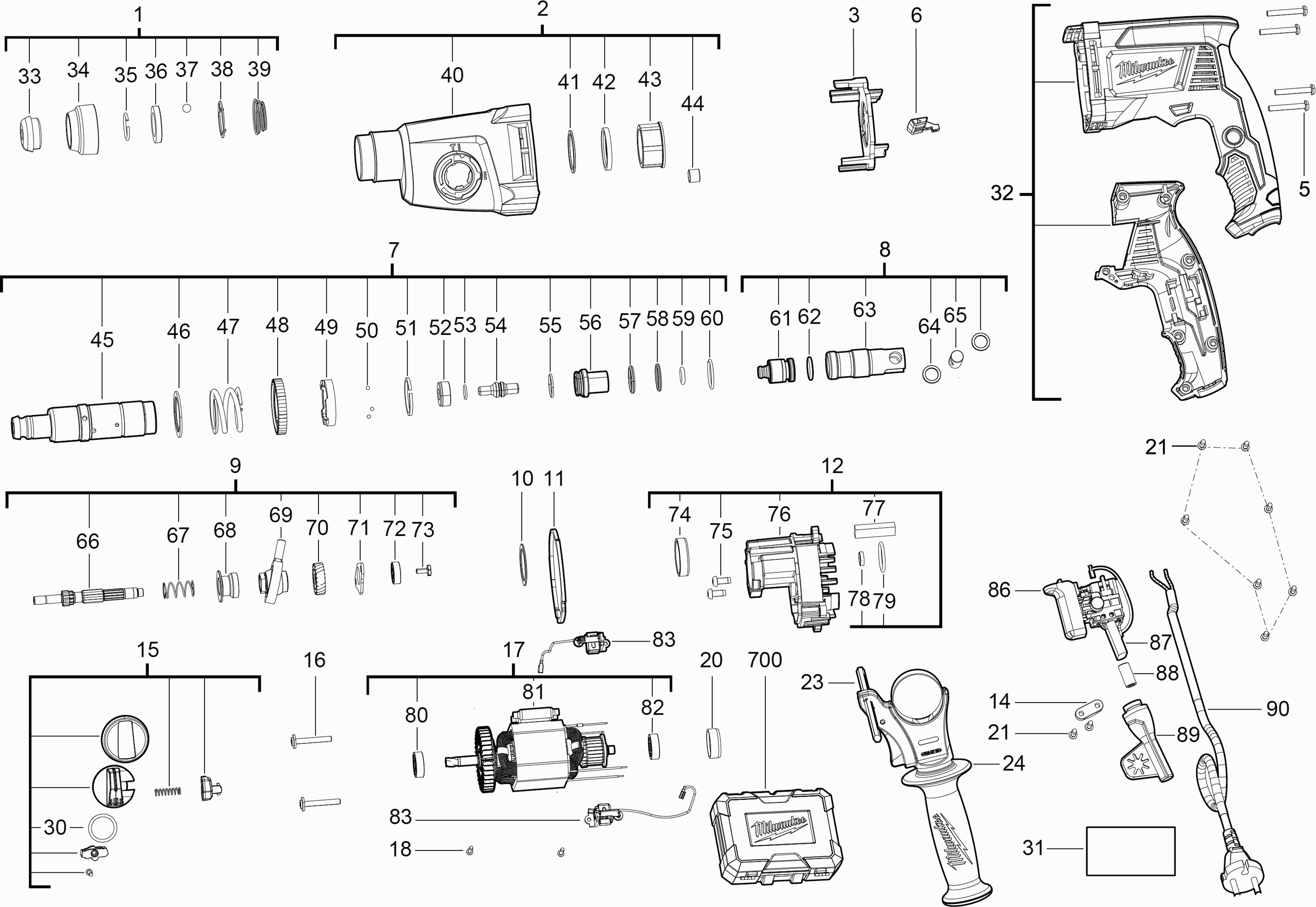 Vous trouverez ici toutes les pièces et dessins disponibles du 'Milwaukee 4000469090 ( PFH26T )'. De là, vous pouvez commander directement toutes les pièces souhaitées. De nombreuses pièces doivent être commandées auprès du fabricant, selon la marque, cela prend une à quatre semaines. Toutes les informations dont nous disposons se trouvent sur notre site Web, nous ne pouvons pas vous conseiller sur ce dont vous avez besoin, pour cela vous devrez retourner la machine pour réparation. Veuillez noter ce qui suit lors de la commande: