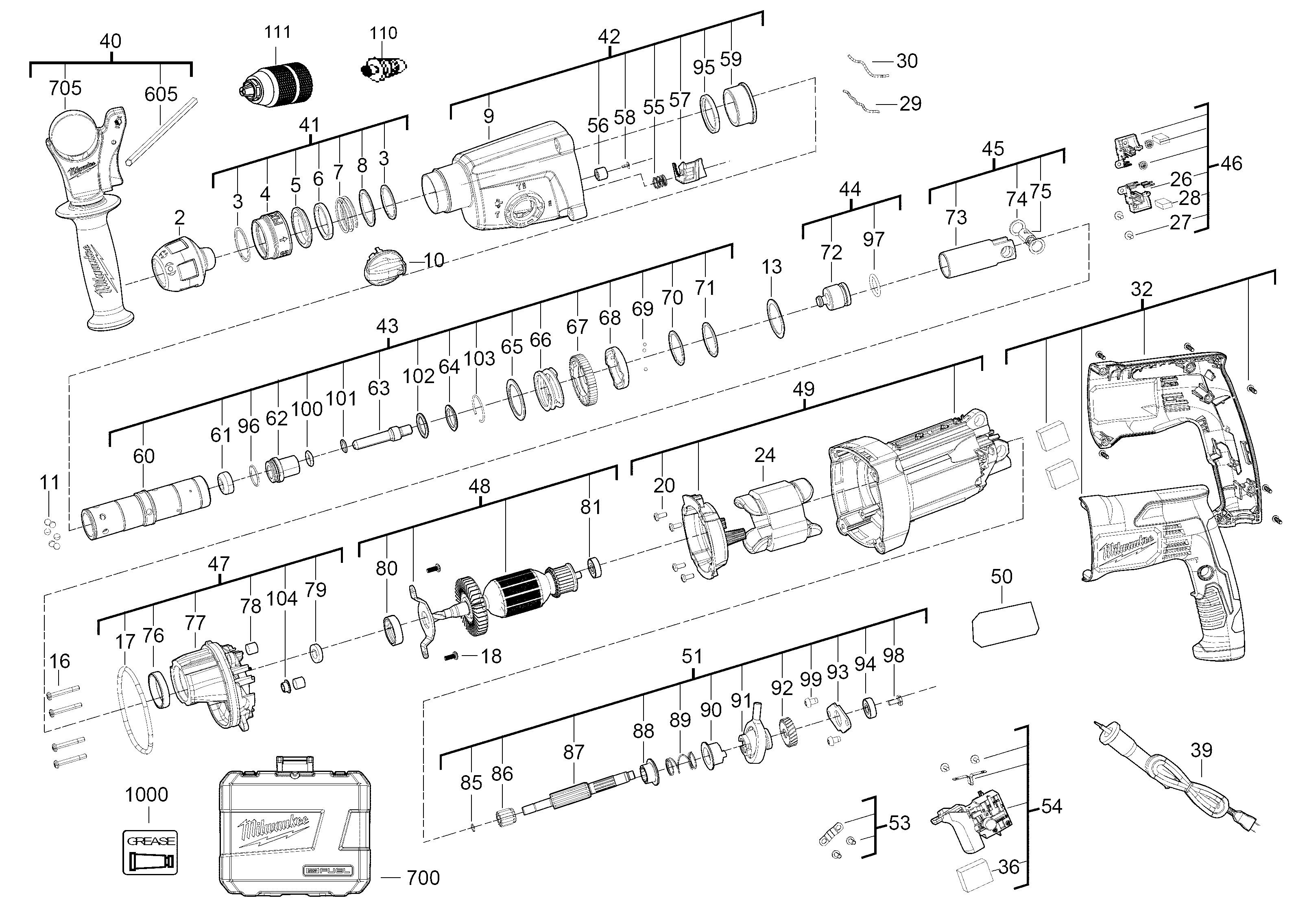 Liste de pièces de rechange des Milwaukee 4000448953 ( PH27X )